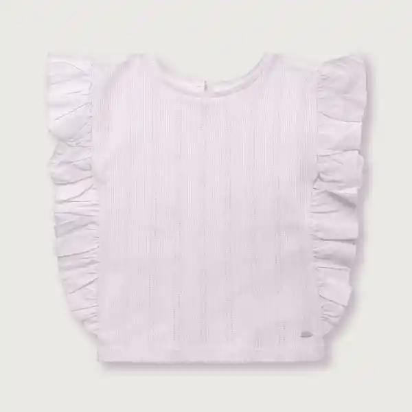 Manga Corta de Color Lila de Rib Desagujado Con Vuelo de Popelina en Los Laterales.