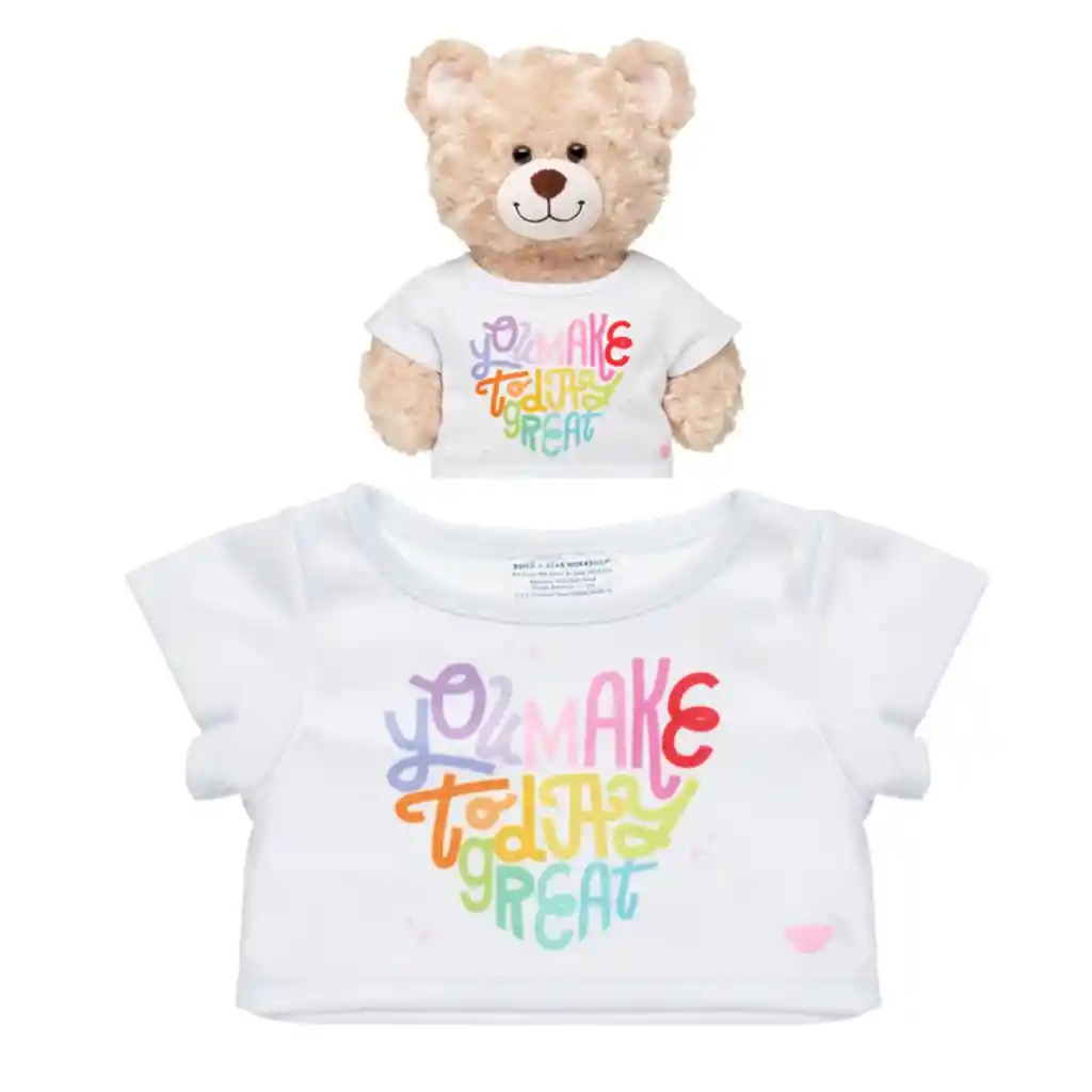 Esta polera U Make Build-A-Bear es el regalo perfecto para cualquier amante de los osos de peluche. Está hecha de un material suave y cómodo, y cuenta con un estampado de letras en la parte delantera que dice “You make today great”. Esta polera es perfecta para cualquier ocasión, ya sea para un día de juego, una fiesta o una ocasión especial. Es una gran manera de mostrar tu amor a tu amigo de peluche el cual hace que tus días sean especiales. Además, es ideal para combinar con la amplia gama de atuendos y accesorios para amigos de peluche Build-A-Bear.