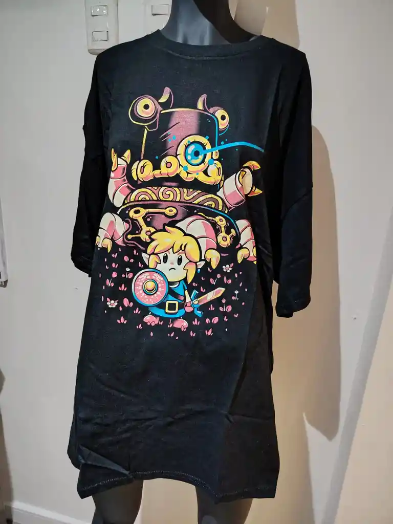 Diseño inspirado en videojuegos clásicos con personaje aventurero y detalles vibrantes. Ideal para amantes del gaming y el estilo geek. TALLA -XXXL