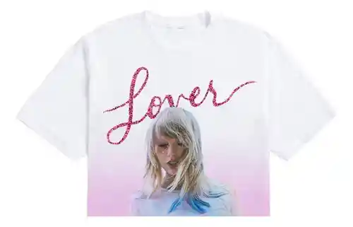 Poleras Lover Album - Taylor Swift - Merch Oficial (album Cover Crop Tee Pink And White Color Fade - M)