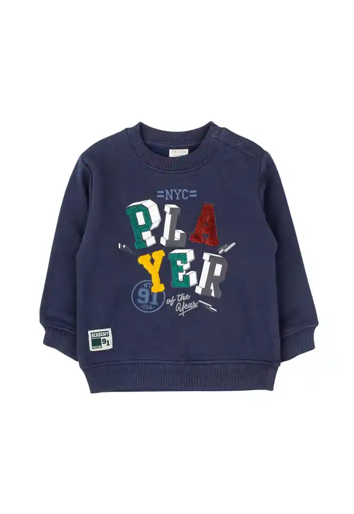 Polerón bebé niño academy 146 Talla: 6 a 12 meses Género: Niño Modelo :Academy Composición: 80% Algodón, 20% Poliéster Garantía: 6 meses Cuidados de la prenda: Lavado con agua a tº máxima de 30º. No blanquear. No dejar en remojo. No secar a máquina. No planchar sobre aplicación