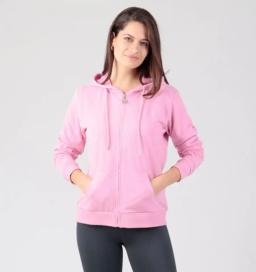 POLERON MUJER CON CAPUCHA Y CIERRE COMPLETO EN DELANTERO, SU TEJIDO SUAVE Y COMODO HACE DE LA PRENDA UN CLASICO QUE COMBINA CON CUALQUIER LOOK, ES UNA PRENDA QUE TIENES QUE TENER SIEMPRE EN TU ARMARIO.