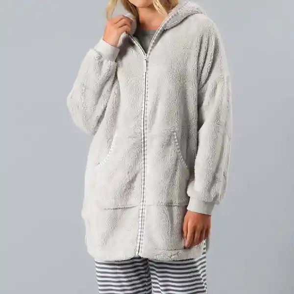 Coral Fleece Con Gorro Color Gris Talla S 100% Polyester.
