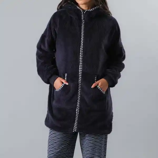 Coral Fleece Con Gorro Color Navy Talla XL 100% Polyester.