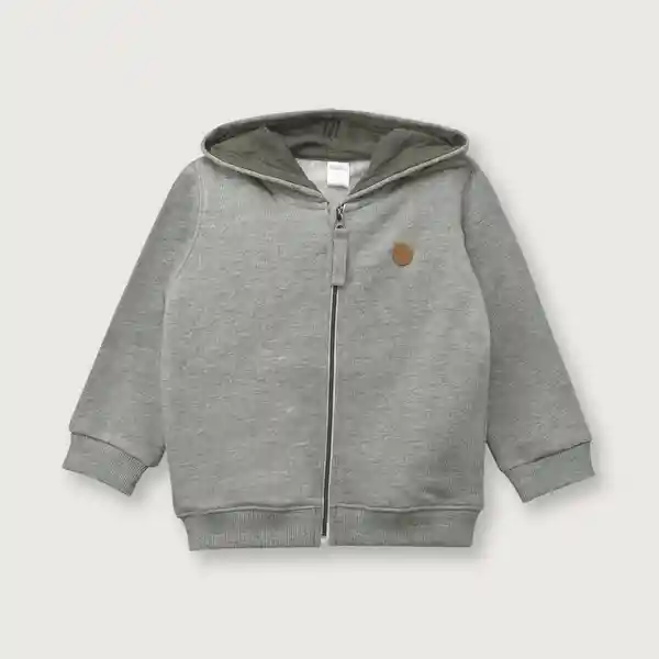 Polerón Con Gorro en Color Gris Con Cierre y Protector en Cuello. Pretina en Puños y Cintura.