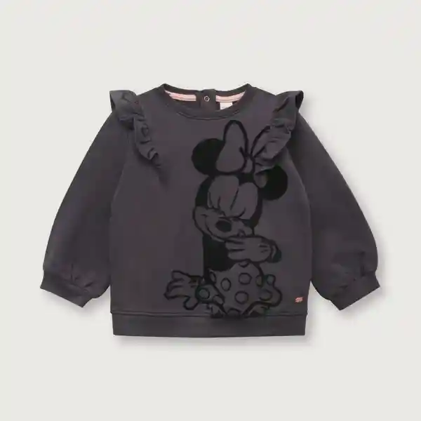 De Color Marengo Manga Globo Con Vuelos en Los Hombros Print Frontal de Minnie Mouse en Color Negro en Calidad Flock.