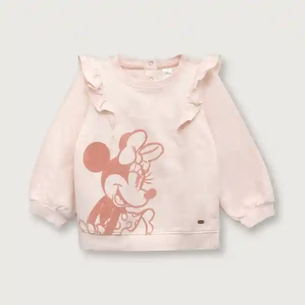 De Color Rosado Manga Globo Con Vuelos en Los Hombros Print Frontal de Minnie Mouse en Color Rosa Viejo en Calidad Flock.