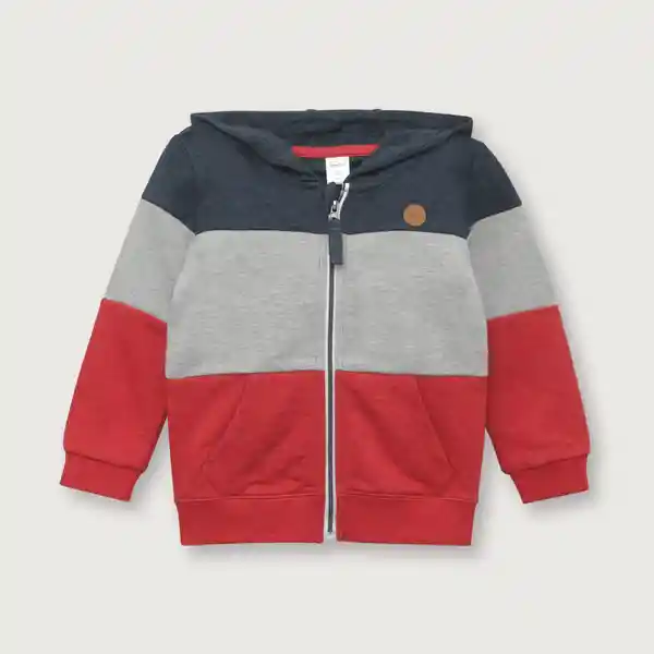 Con Gorro y Abertura Delantera Con Cierre Bolsillos Frontales Canguro Puños y Pretina de Mini Canalé Elásticado. Color Principal en Franjas Marino Blanco y Rojo.