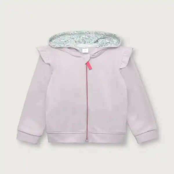 De Buzo Básico de Color Lila Con Abertura Central Con Cierre Detalle de Vuelos en Los Hombros y Gorro Con Estampado en el Interior.