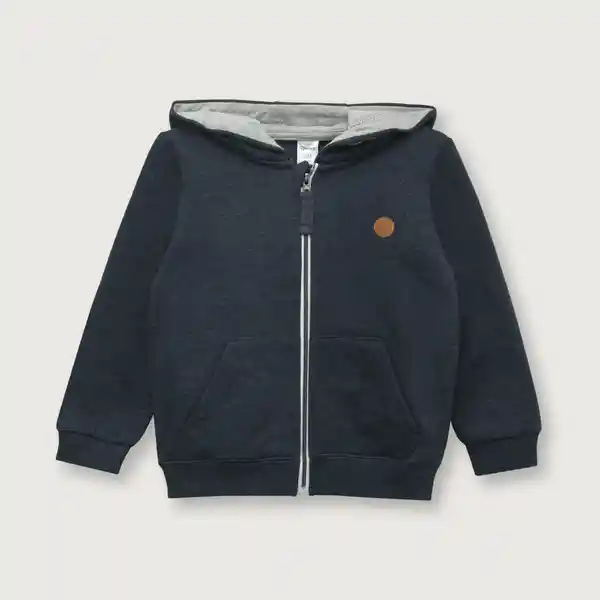 Con Gorro y Abertura Delantera Con Cierre Bolsillos Frontales Canguro Puños y Pretina de Mini Canalé Elásticado. Color Principal Marino Con Forro en Gorro Color Gris Melange.