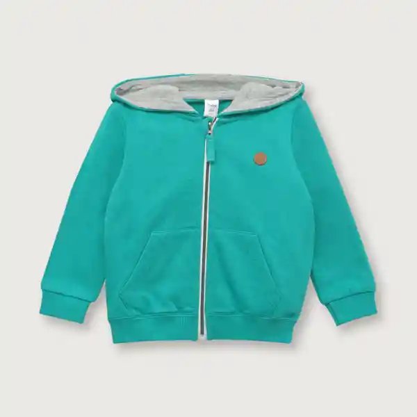 Con Gorro y Abertura Delantera Con Cierre Bolsillos Frontales Canguro Puños y Pretina de Mini Canalé Elásticado. Color Principal Verde Con Forro en Gorro Color Gris Melange.