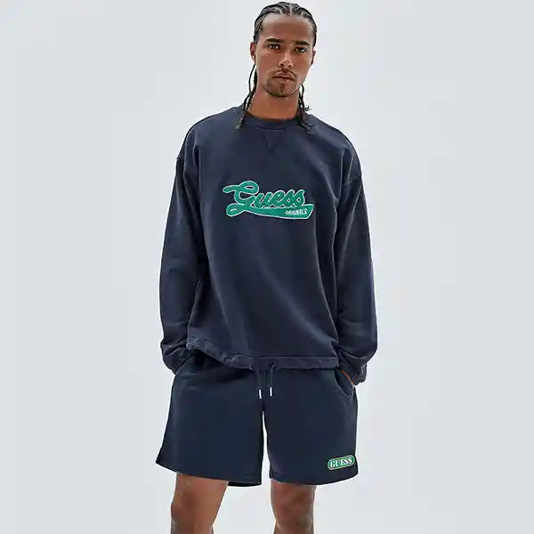 Polerón de Hombre Manga Larga Con Corte Regular y Largo a la Cadera. Diseño en Tono Liso Con Tipografía Cursiva de Letras Guess en Parte Frontal y Cuello Redondo. Materiales: 100% Cotton.