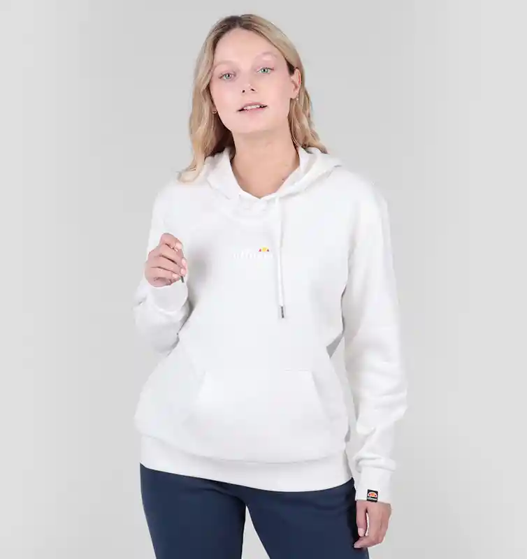 Poleron Mujer Ellesse Carolina 2 Off White. Poleron mujer con capucha y bolsillo canguro en delantero, su tejido suave y comodo hace de la prenda un clasico que combina con cualquier look, es una prenda que tienes que tener siempre en tu armario. Ellesse es una marca amigable y coqueta, ideal para aquellos a los que les fascina el color, adoran la vitalidad y viven el momento. Somos una marca italiana, mostramos la esencia de una gran cultura plasmada en colecciones que brindan sofisticación, elegancia y distinción para la actividad física contemporánea.