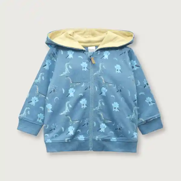 Color Azul Con Estampado de Dinosaurios Gorro Con Forro de Color Mostaza Cierre al Tono y Rib Elasticado en Puños.