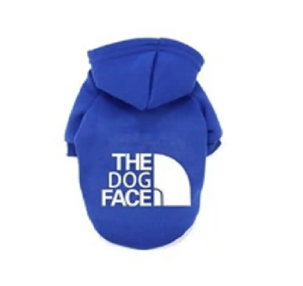 Polerón para Perros Pequeños modelo estampado DogFace. Color Azul. Talla XL circunferencia de pecho 47 cm y largo de espalda 38 cm.