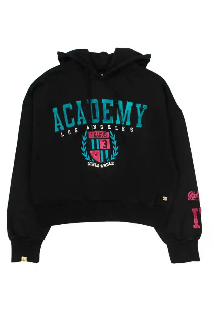 Polerón teens niña academy 536 Talla: 12 años Género: Niña Modelo :Academy Composición: 80% Algodón 20% Poliéster Garantía: 6 meses Cuidados de la prenda: Lavado con agua a tº máxima de 30º. No blanquear. No dejar en remojo. No secar a máquina. No planchar sobre aplicación