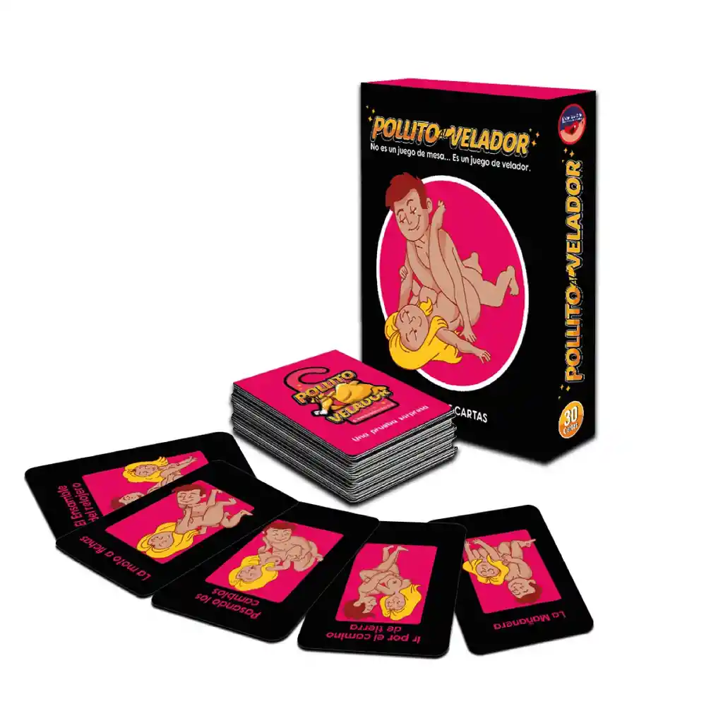 El juego erótico de cartas para parejas “pollito al velador” es un juego ideal para quienes desean comenzar con los juegos de salon eróticos Incluye: 30 cartas con posiciones sexuales 2 cartas con comodines No es un juego de mesa… Es un juego de velador!
