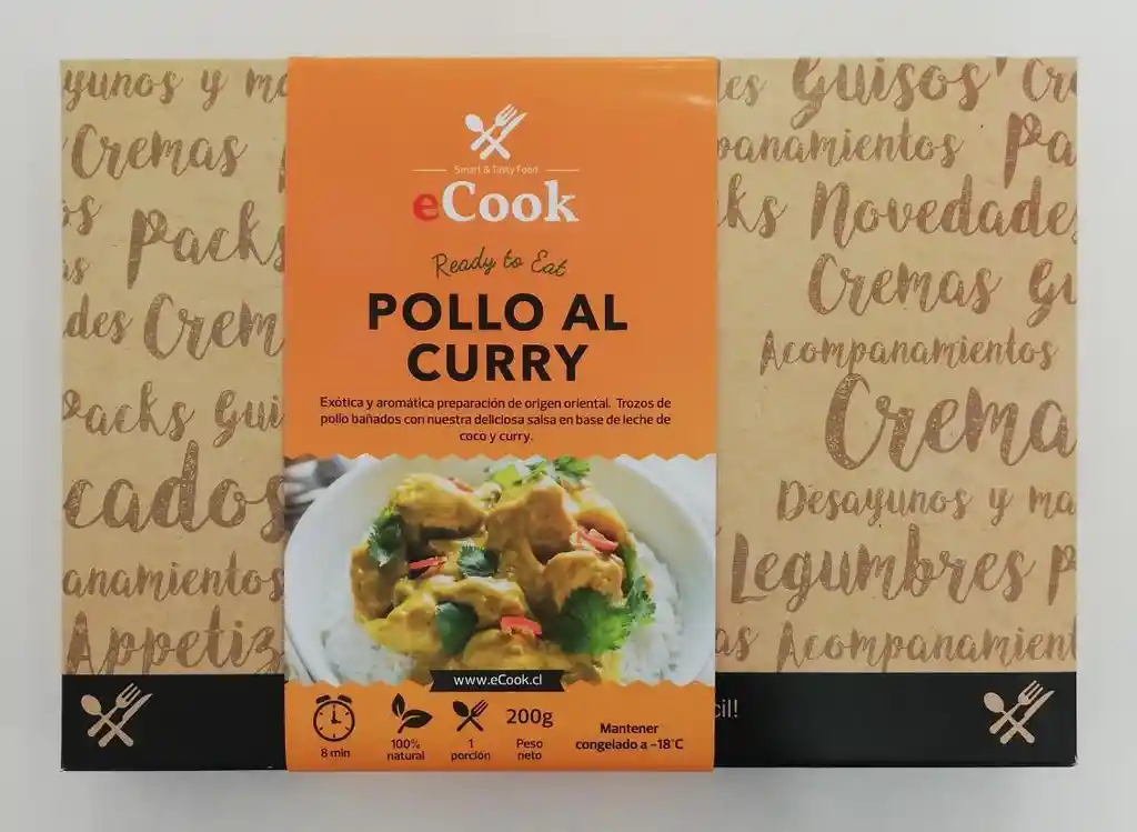 Trozos de pollo bañados con salsa en base de leche de coco y curry. Bolsa al Vacío. Producto congelado, listo para calentar en la misma bolsa y servir.