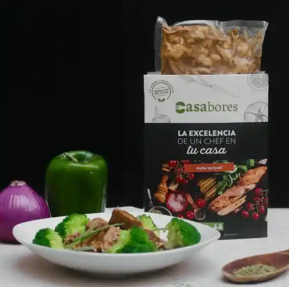 Tradicional plato de la gastronomía japonesa, elaborado con láminas de pollo, bañadas en nuestra deliciosa salsa teriyaki. Ingredientes: Pechuga de pollo deshuesada, salsa de soya, maracuyá en pulpa, jengibre natural, aceite de sésamo, maicena, azúcar, sal fina. Son tan fáciles de calentar que solo necesitas una olla con agua hirviendo. Sumerges el producto (con bolsa) durante 7 minutos y listo.