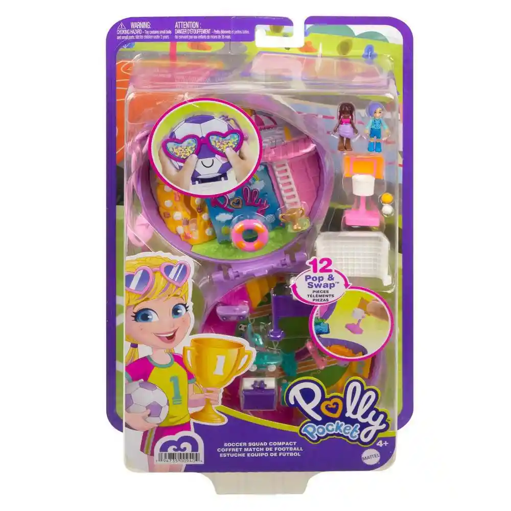 Contiene 14 Unidades. Muñeca 2 Und + Accesorios 12 Und. ¡Prepárate Para Vivir Las Mini Aventuras Deportivas de Tiny Sports Adventures Con Polly Pocket! Perfecto Para Jugar en Casa o en Cualquier Lugar el Estuche Soccer Squad Tiene el Diseño de Una Pelota de Fútbol Con Unos Bonitos Anteojos de Sol en el Exterior Con Brillantina Para Agitar. Cuando Abras el Estuche te Encontrarás Con Una Emocionante Aventura de Deportes Que Incluye 5 Sorpresas y Funciones Increíbles 12 Accesorios (Algunos Con la Función de Enganche Pop & Swap) y 2 Micro Muñecas. Descubre e Interpreta la Diversión Basada en Narrativas Con Una Variedad de Posibilidades: Engancha Una de Las Muñecas en la Pared de Escalada en Roca Despliega la Piscina de Natación Para Nadar Unos Largos Tira a Los Aros de Baloncesto Pasa la Pelota de Voleibol de un Lado a Otro de la Red y Abre el Refrigerador Para Buscar un Refresco. ¡Engancha Las Piezas en Distintos Lugares Del Estuche Para Crear un Sinfín de Posibilidades de Juego! El Estuche También Viene Con Una Correa Para Que Las Niñas Puedan Llevarlo a Todos Lados y Divertirse Con Las Aventuras de Polly Pocket. Los Colores y Las Decoraciones Pueden Variar. Excelente Regalo Para Niñas de 4 Años en Adelante.
