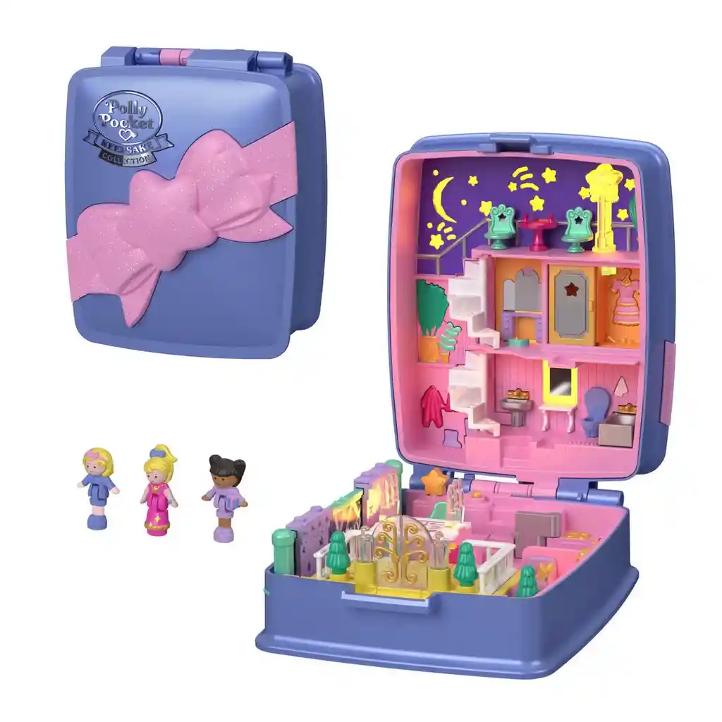 Durante más de 30 años, la muñeca Polly Pocket™ ha cautivado a fans de todo el mundo con mundos pequeños y grandes sorpresas. La Polly Pocket Keepsake Collection™ trae de vuelta la magia de los clásicos favoritos de los fans del baúl de Polly Pocket™; algunos son estuches nunca antes vistos y otros son recreaciones actualizadas. El estuche Starlight Dinner Party™ de Polly Pocket™ es una versión moderna del clásico set de juego tradicional. Las características actualizadas incluyen luces funcionales para una transición mágica del día a la noche, una mesa que gira para convertirse en una fiesta con cena de 3 platos, un refrigerador que se abre y una habitación para cambiarse con luz. El set cuenta con tres muñecas, dos de ellas son la muñeca Polly™, cada una con un atuendo diferente para pasar del día a la noche también. Los coleccionistas pueden rememorar la magia de su estuche Polly Pocket™ favorito de la infancia con este sofisticado recuerdo. ¡Es un gran obsequio coleccionable para los fans de Polly™ de todo el mundo! Las muñecas no se pueden mantener de pie por sí solas. Los colores y las decoraciones podrían variar.