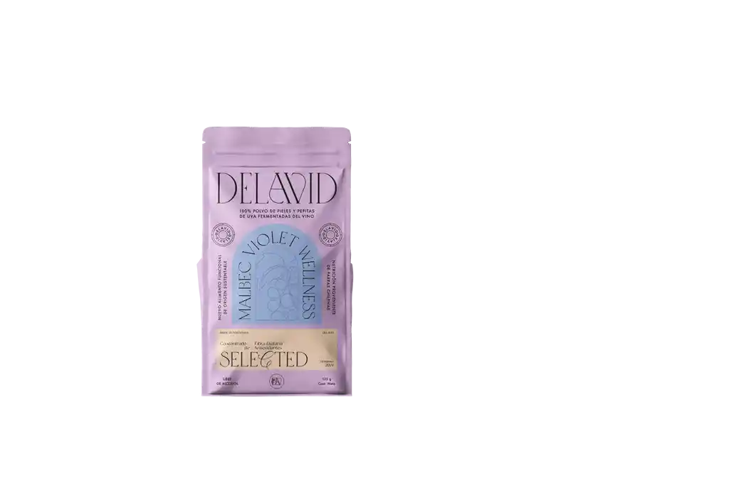 Delavid Malbec – Violet Wellness Antioxidante Polvo natural de uva Malbec fermentada, rico en antioxidantes, fibra y color violeta intenso. Ideal para smoothies, infusiones, repostería y cocina saludable. Delavid Malbec Violet Wellness es un superalimento en polvo, elaborado con orujo de uva Malbec de viñedos chilenos. Su vibrante color violeta proviene de antocianos naturales, conocidos por su potente capacidad antioxidante. 🍇 Antioxidantes (1.600 ORAC/5 g): Protege tus células del estrés oxidativo. 🔥 Antiinflamatorio natural: Estudios celulares demostraron reducir el TNF-α, lo que le otorga un potencial antiinflamatorio. 🌾 Alta en fibra (45%): Mejora la digestión y equilibra la microbiota. 🌱 Sustentable y natural: Sin alcohol, sin aditivos, 100% plant-based. ✅ Usos recomendados: Yogures, bowls y smoothies. Infusiones, borgoñas y sangrías sin alcohol. Repostería, cocina gourmet, jugos y batidos. 🏆 Premio Indigo Design Award 2024 – Atenas. Deshidratado con tecnología avanzada. Sin azúcar, sin alcohol ni conservantes.