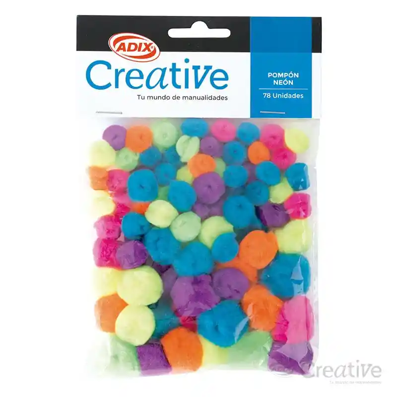 Pompón Neón Colores Surtidos 78 Unidades aproximadamente. Ideales para trabajos manuales y decoración. Medida de 1.2 cm aprox. Producto no Apto para niños menores de 3 Años.