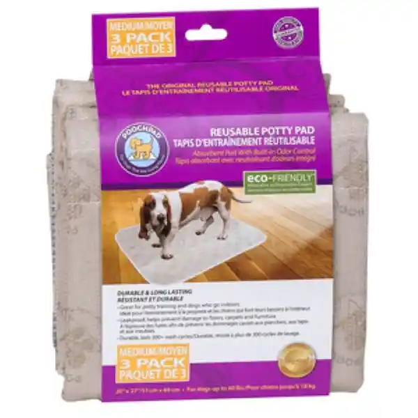 Contiene 3 Unidades. Ahorra Dinero Controla Los Olores y Protege Tus Muebles y Pisos Con Los Tapetes Absorbentes Reutilizables de Pooch Pad Products. Diseñados Para Los Dueños de Perros Que Aman a Sus Mascotas Pero Odian el Desorden y el Olor Que Resulta de Los Accidentes. Son Ideales Para Cachorros Perros Mayores Con Incontinencia y Perros Que Están Solos en Casa Todo el Día Mientras tu Estás Fuera. Cuando se Usan y Cuidan Correctamente Pueden Resistir Más de 300 Lavados Sin Perder su Capacidad de Absorción o su Eficacia Para Eliminar Los Olores. Y Dado Que no Hay Desperdicio Que Desechar Los Pooch Pads Son Mejores Para el Medio Ambiente. Beneficios: Ideal Para Entrenar la Rutina Del Baño y Uso al Interior Del Hogar. Absorben Hasta Cuatro Veces su Propio Peso Sin Gotear. Capa Inferior Protectora Que Evita Que la Humedad Absorbida Pase Las Superficies. Contienen Agente Antimicrobiano no Tóxico Que Inhibe el Crecimiento de Bacterias Responsables de Los Olores Asociados Con la Orina. Fabricado Con Fibras Antimicrobianas Dupont Comforsorb Xm. Fácil de Limpiar en la Lavadora. El Paquete Incluye 3 Tapetes Medianos.