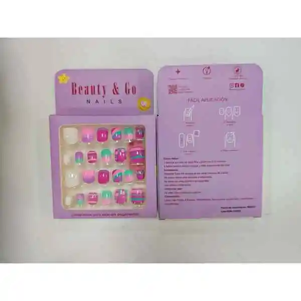 ¡Colores vibrantes y diversión garantizada! Este set press-on mezcla rosa, blanco y verde con detalles súper brillantes y rayitas coquetas. Forma: Cuadrada Corta Kit Incluye: 24 uñas con sticker incorporado, lima, palo de cuticula y alcohol pad. 100% veganas, libres de crueldad animal, listas en 10min y duran hasta 1 semanas.