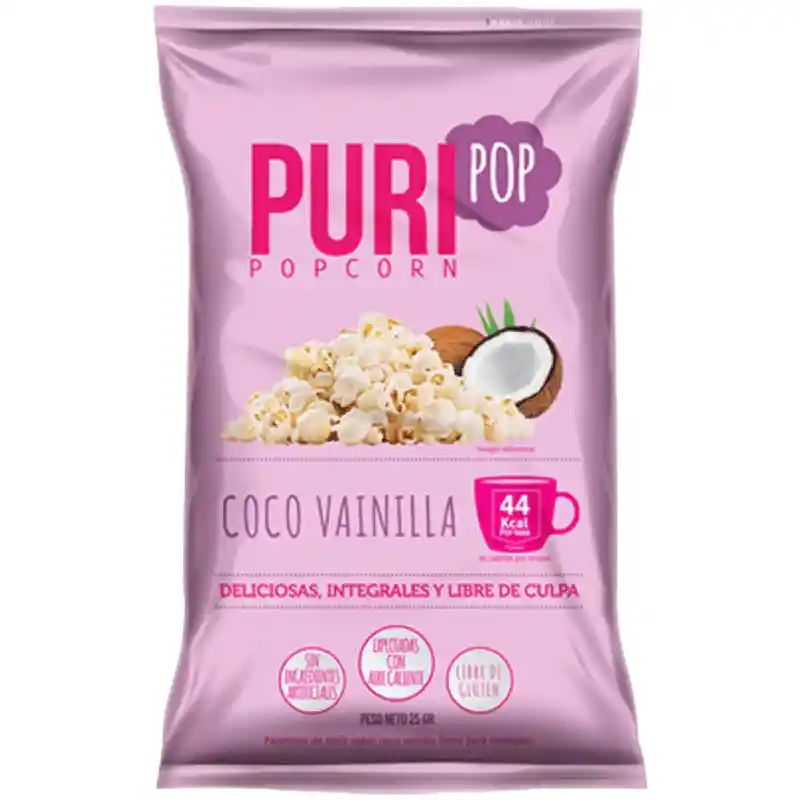 Puripop Coco Vainilla son el snack perfecto para solo disfrutar y transportarte a tu lugar ideal. Cabritas con un toque de vainilla y con exquisitos chips de coco tostado, lo mejor para darte un gusto.