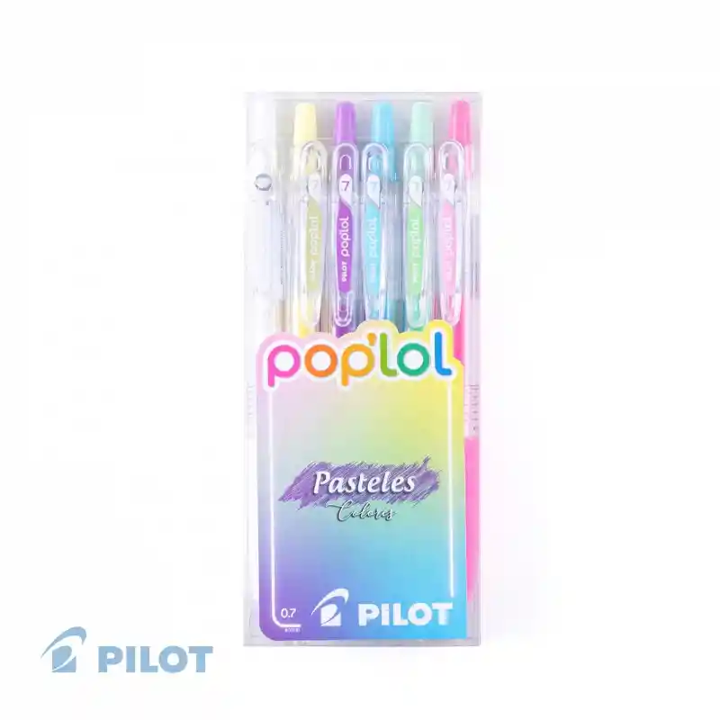 Set Pilot Contiene 6 Unidades- Lapiz Gel Poplol 0.7 Pasteles. Set de Lápices de Suave Trazo de Colores Viene Con un Clip Resistente y su Calidad Made in Japan Que Caracteriza a la Marca Pilot. Medida de Punta 07 mm. Incluye Colores Pasteles Verde Azul Rosado Violeta Amarillo y Blanco