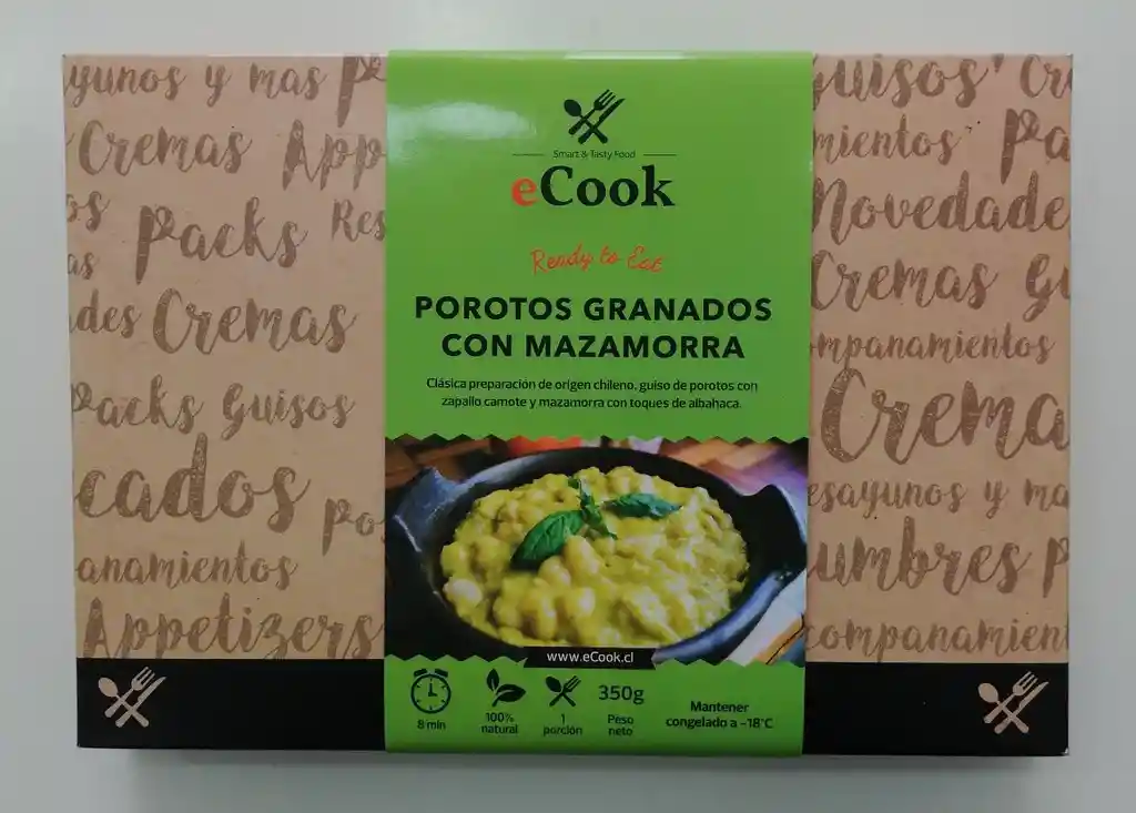 Guiso de Porotos con Zapallo Camote y mazamorra con toques de albahaca. Bolsa al Vacío. Producto congelado, listo para calentar en la misma bolsa y servir.