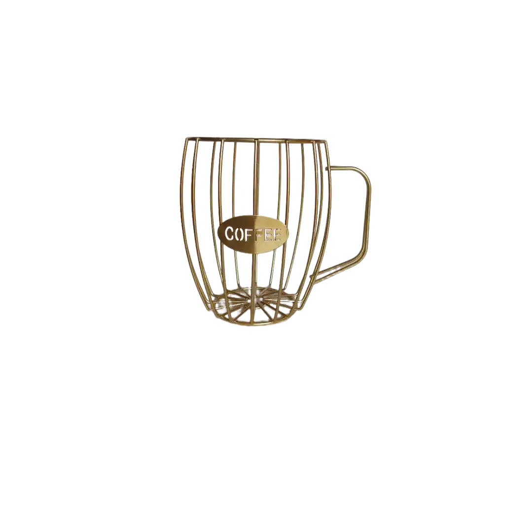 DESCRIPCIÓN Porta cápsulas metálico con forma de taza de café. Este organizador de cápsulas de café es un excelente complemento para tu cocina, ya que se puede colocar fácilmente junto a la máquina de café, lo que le permite organizar las cápsulas de café. En él, se pueden ver todas las variedades de cápsulas de café de manera fácil y rápida, y acceder a tu bebida favorita en un instante. Este soporte para cápsulas de café está hecho de metal con un acabado de pintura en la superficie, lo que lo hace duradero, fuerte y resistente. Además, su diseño moderno y sencillo se adapta perfectamente a cualquier parte, ya sea en la cocina, sala de estar, oficina o cualquier otro lugar. Múltiples usos. Su diseño hueco permite guardar cualquier tipo de cápsula de café, ya sea para Nespresso, Dolce Gusto, Vertuo o una combinación de ellas. Este organizador de cápsulas de café es perfecto para almacenar no solo cápsulas de café, sino también otros artículos, como cápsulas de crema, utensilios de cocina, etc. Las cápsulas de café NO están incluidas. CARACTERÍSTICAS Diseñado para usar con cualquier variedad de cápsulas: Dolce Gusto, Nespresso, Vetuo, etc. Diseño simple, elegante y moderno. Ideal para la casa u oficina. ESPECIFICACIONES Material: metal. Medidas: alto 18 cms, diámetro máximo canasto 16 cms., con mango 21,5 cms. Color: dorado. Mango recto. Multiuso. QUÉ VIENE EN LA CAJA Porta cápsulas. (No incluye cápsulas).