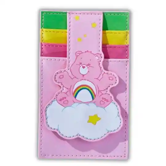 Practico tarjetero de cuero ecologico y cierre de presion con hermoso diseño de los care bears.