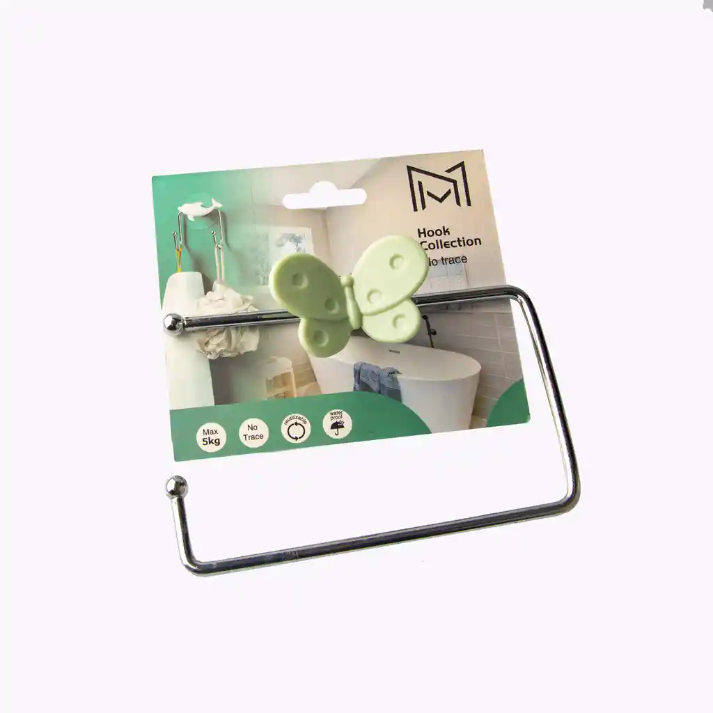 Porta rollo metálico de diseño de mariposas. Este porta rollo será perfecta para fijarlas en la pared para colgar el papel higiénico, o toallas. Aguanta hasta 5kg. Aprueba de Agua y Reutilizables Se pega con una ventosa adhesiva a presión muy resistente. Medidas: Alto: 8cm Profundidad total: 3.8cm Largo: 13cm