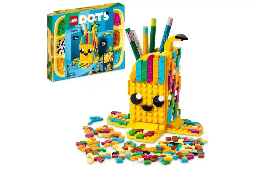 Potencia la infinita creatividad de tu apasionada de los proyectos DIY con el útil kit de manualidad LEGO® DOTS Portalápices Plátano Adorable (41948). Este organizador de escritorio para niñas a partir de 6 años se construye rápido gracias al folleto de instrucciones incluido. Contiene un portalápices amarillo con forma de plátano y montones de coloridas piezas para decorarlo. El set, fácil e intuitivo de diseñar, ofrece a las niñas un lienzo para expresarse una y otra vez, y es perfecto para llenar de diversión las sesiones de juego diarias. ¡Agrega la bolsa DOTS Extra: Edición 6 (a la venta por separado) para tener más piezas! Juego libre Los sets DOTS introducen a las peques en el alegre mundo del juego con LEGO mientras los decoran. Con este portalápices, y con los demás kits DOTS (a la venta por separado), todo vale: la magia y el control están en la imaginación. Este objeto de decoración y el resto de los sets DOTS son regalos creativos ideales para niñas que merecen un premio. • Diseña, usa, rediseña y repite: Inspira a tu apasionada de la fruta con el kit de manualidad LEGO® DOTS Portalápices Plátano Adorable (41948). La diversión creativa empezará en cuanto abra la bandeja. • Exprésate sin palabras: Las fans de las manualidades podrán dar alas a su imaginación construyendo y decorando el portalápices, que cuenta con espacio para bolígrafos, lápices u otros objetos y trae montones de piezas decorativas. • Lienzo en blanco: El kit es perfecto para reflejar la inagotable creatividad de las peques. Además, usar las piezas decorativas de la bolsa DOTS Extra: Edición 6 LEGO® DOTS (a la venta por separado) les permitirá dar más variedad a sus diseños. • Un premio divertido y práctico para mayores de 6 años: Cualquier fan de las manualidades sabrá ver el atractivo de este kit totalmente personalizable. El útil portalápices y la infinidad de coloridas piezas decorativas son un regalo fantástico. • Espacio para diseñar: El portalápices mide aproximadamente 12 cm de altura y 14 cm de anchura y profundidad, ¡un montón de espacio para que las peques desplieguen su creatividad y muestren cada faceta de su estilo! • ¿Qué diseñarán las jóvenes creadoras? Con las instrucciones de construcción fáciles de seguir, las inspiradoras propuestas de decoración impresas en el embalaje y el folleto incluido, el proceso de creación es rápido y el juego empieza al instante. • Confianza y libertad: Este kit de objeto de decoración LEGO® DOTS viene con su bandeja para recoger todo fácilmente y ofrece a las niñas una libertad creativa que desarrolla su ingenio y su soltura a través de la diversión. • Autoexpresión y juego sin límites: Los sets LEGO® DOTS llevan la alegría del juego con LEGO a un nuevo grupo de peques mediante el diseño y la personalización de sus propias joyas de fantasía u objetos de decoración. • Calidad sin concesiones: Desde 1958, los componentes LEGO® cumplen estrictas normas del sector para garantizar que siempre se conecten perfectamente. • La seguridad es lo primero: Los componentes LEGO® se dejan caer, se calientan, se aplastan, se retuercen y se analizan para verificar que satisfacen rigurosos estándares mundiales de seguridad.