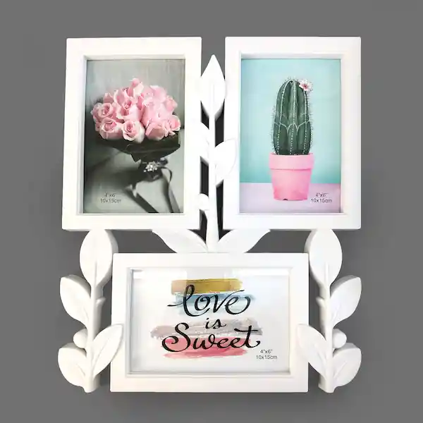 PORTARETRATO 3 FOTOS HOJAS BLANCO