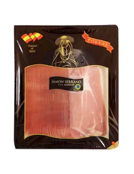 Directamente desde España el jamón serrano Porxas es exquisito y perfecto para complementar tu picoteo! atrévete a probarlo en sándwiches distintas preparaciones ensaladas o como más te guste. Formato familiar. Laminado con láminas interfoliadas. Producto español. 500 g