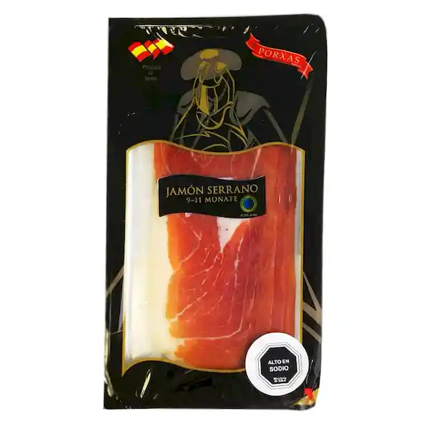 Directamente desde España el jamón serrano Porxas es exquisito y perfecto para complementar tu picoteo! atrévete a probarlo en sándwiches distintas preparaciones ensaladas o como más te guste. Laminado. Producto español. 100 g