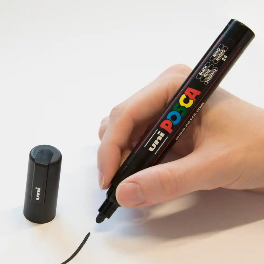 Posca 5M (1.8 - 2.5mm) - Set Blanco y Negro De 2 marcadores Con los marcadores Posca puedes desplegar tu arte sobre una gran variedad de superficies utilízalos sobre papel, plástico, metal, piedras, madera, etc. ¡Dale vida a tus artículos con los colores que más te gustan! Características: Set incluye 2 marcadores Punta: 1.8 a 2.5 mm