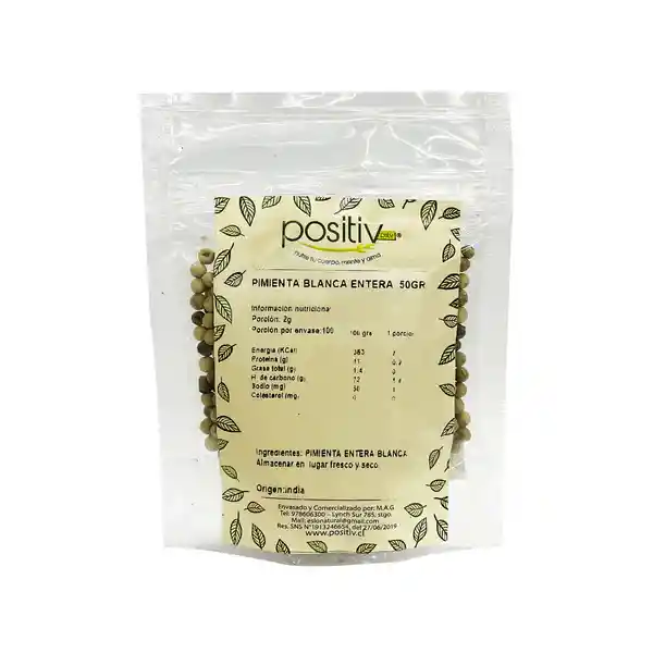 Positiv - Pimienta Blanca Entera 50 g Producto Natural Cuidadosamente Elaborado Para Aportar Sabor Nutrición y Bienestar Ideal Para Quienes Buscan Una Vida Más Saludable.