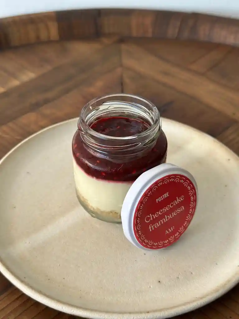 Cheesecake elaborado con base de galletas de mantequilla, emulsión de queso crema y un topping de coulis de berries. Pote 145 cc. Conservación: Mantener congelado a -18 °C. Tiempo de descongelado: 1 hora sin refrigeración Nota: AM La Reina al ser punto de retiro, todos los productos disponibles son congelados
