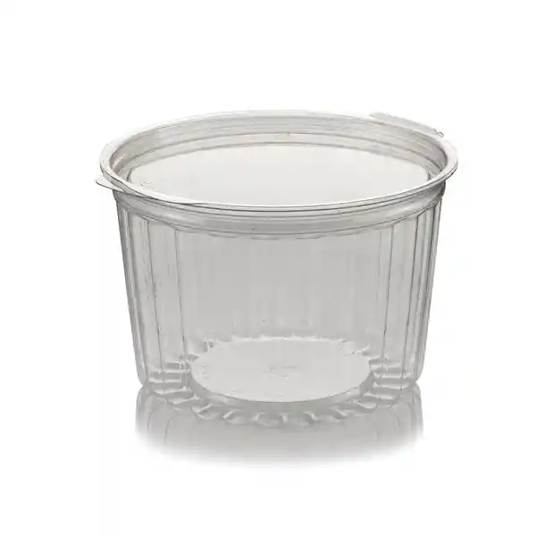 Pote con tapa bisagra para uso de postres, fruta, frutos secos y alimentos que no requieren altas o bajas temperaturas.
