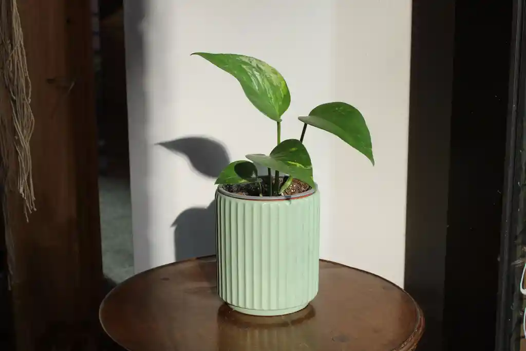 Pothus en macetero de ceramica. El tamaño de las plantas y flores puede presentar una variacion, asi como su apariencia, cantidad de hojas y color, respecto de la imagen.