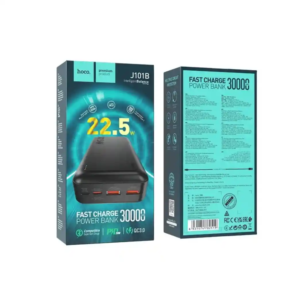 El poderoso modelo Hoco J101B es algo indispensable para cualquier usuario de dispositivos modernos. La batería externa Hoco J101B cargará rápidamente tu smartphone, tablet y cualquier otro de tus dispositivos. El cargador portátil tiene una salida para cargar dispositivos micro USB, USB-A y una entrada para cargar un banco de energía Tipo-C. Capacidad: 30000 mAh. El nivel de carga del Power Bank mostrará el indicador LED integrado. Con él, puedes cargar varios dispositivos al mismo tiempo. Voltaje/corriente de entrada USB tipo C: 5 V/2,4 A, 9 V/2 A Voltaje/corriente de salida USB: 5 V/3 A, 9 V/2 A, 12 V/1,5 A, USB tipo C: 5 V/2,4 A, 9 V/ 2,2 A, 12 V / 1,6 A Salida total: 5 V / 3 A Sistema de protección multinivel incorporado contra sobretensiones, cortocircuitos, sobrecargas.