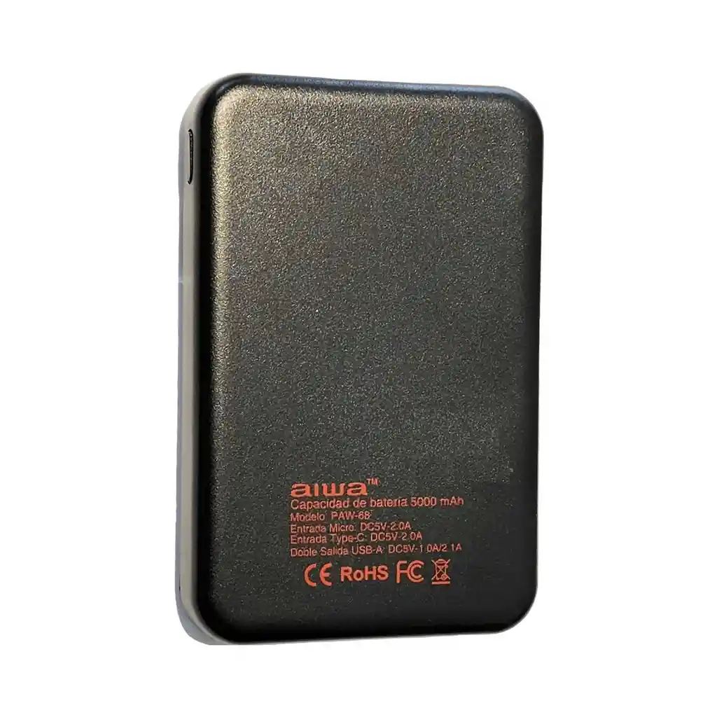Power Bank Aiwa PAW-68 Cargador Portátil Usb Universal Nunca más te preocupes por quedarte sin energía con el cargador portátil Aiwa PAW-68. Este elegante y potente cargador cuenta con una batería de 5000 mAh, una linterna incorporada con Aiwa PAW-68, puede cargar fácilmente su teléfono inteligente, tableta u otros dispositivos; ya sea que esté de excursión, acampando o simplemente haciendo mandados Características del Producto Capacidad de 5000 mAh Entrada Tipo C: 2 A Entrada Micro USB: 2 A Salida USB: 2.1 A Compatible con iPad, Android, iPhone, Audífonos, Tablets, etc. Tamaño: 98,3 x 64,4 x 16 mm