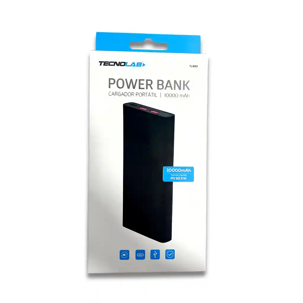 Powerbank 10.000mAh Negro. El Powerbank 10.000mAh Tecnolab es la solucion ideal para mantener tus dispositivos siempre cargados mientras te desplazas. Con una capacidad de 10.000mAh, este powerbank asegura multiples cargas para tus dispositivos, garantizando que nunca te quedes sin bateria en momentos criticos. Su diseño compacto y portatil lo hace perfecto para llevarlo en tu bolso o mochila, asegurando que siempre tengas energia adicional a mano. Equipado con tecnologia Power Delivery (PD) de 22.5W, el Powerbank Tecnolab ofrece una carga rapida y eficiente para una amplia gama de dispositivos, incluyendo smartphones, tablets y otros dispositivos compatibles. Su alta potencia asegura una carga rapida, permitiendote ahorrar tiempo y mantener tus dispositivos listos para usar en todo momento. Ademas, cuenta con multiples protecciones integradas contra sobrecalentamiento, sobrevoltaje y cortocircuitos, garantizando una carga segura y confiable. El diseño elegante y robusto del Powerbank 10.000mAh Tecnolab lo convierte en una opcion duradera y estilizada para cualquier usuario. Sus indicadores LED de carga te permiten monitorear facilmente el nivel de bateria restante, asegurando que siempre estes preparado. Con este powerbank, puedes disfrutar de la tranquilidad de saber que tus dispositivos estaran siempre cargados y listos para la accion, sin importar donde te encuentres. Manten la energia a tu alcance con el Powerbank 10.000mAh Tecnolab