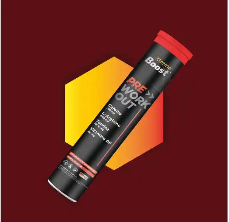 NO CONTIENE ASPARTAMO. Pre Workout Xtreme Boost es ideal como pre-entreno para realizar ejercicios de alta intensidad. La cafeína aumenta la sensación de energía en forma rápida antes y durante el entrenamiento. La arginina ayuda a disminuir la fatiga muscular y en conjunto a la cafeína, taurina y vitamina B6, contribuyen a mejorar la resistencia física. Energía inmediata Potente activador Entrenamiento de alta intensidad Evitar fatiga muscular Modo de uso: Disolver 2 tabletas en un vaso de agua Para un mejor rendimiento deportivo se recomienda consumir 15-45 minutos antes del entrenamiento. Cada tubo contiene 20 tabletas efervescentes, sabor a guaraná. Sin gluten, sin lactosa, apto para veganos. Pack de 3 unidades (60 tabletas) Garantía del vendedor: 6 meses