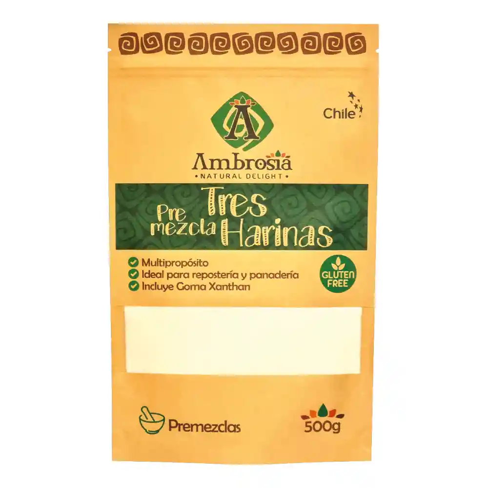 Ingredientes: Harina de Arroz, Almidón de Mandioca, Almidón de Maíz y Goma Xanthan. Peso: 500g. Certificación: Libre de gluten. Duración: Consumir dentro de 16 meses a partir de la fecha de elaboración Ideal para: repostería, panes, preparaciones de masas, *Procesado en líneas que NO contienen lácteos, sulfitos, huevo ni soya. Sin conservantes ni mezclas de otros subproductos. ¡NUEVA PREMEZCLA TRES HARINAS! Una mezcla de harinas que se utiliza como base para preparaciones de repostería y panadería en general. Su versatilidad la hace una excelente alternativa para realizar todo tipo de preparaciones que comúnmente son elaboradas con harinas de trigo convencionales.