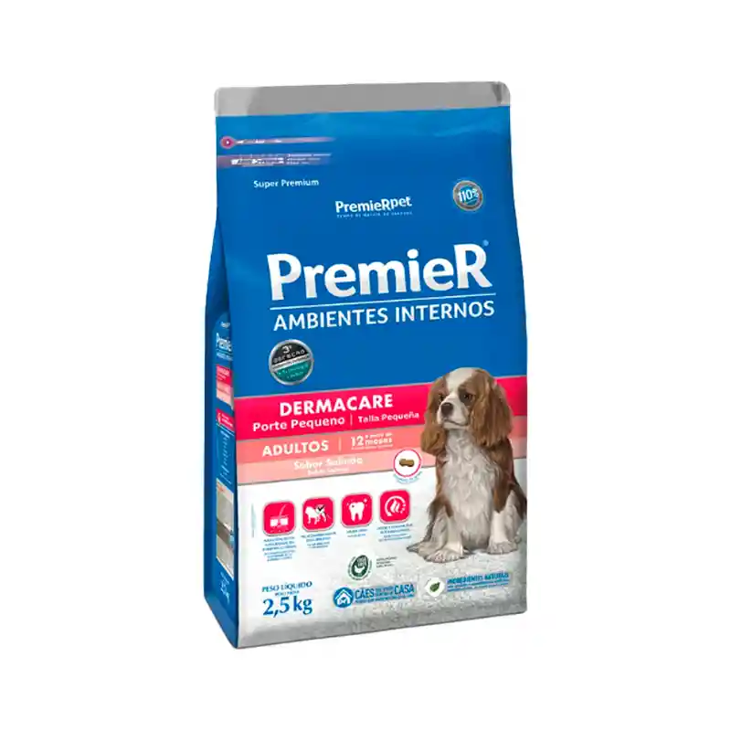Premier Ambientes Internos Perros Adultos Porte Pequeño Salmón Dermacare 2.5kg, proporciona una serie de beneficios clave para la salud de los perros. Gracias a la combinación de ácidos grasos esenciales y biotina, mantiene la piel protegida e hidratada, mientras que el zinc y los aminoácidos sulfurados favorecen un pelaje brillante y exuberante. El contenido de hexametafosfato de sodio ayuda a prevenir la formación de sarro dental, promoviendo una buena salud bucal. Además, la selección de ingredientes especiales contribuye a la reducción del olor y volumen de las heces, lo que mejora la calidad de vida tanto del perro como de sus dueños. Con un perfil nutricional equilibrado, este alimento garantiza una nutrición óptima para perros con necesidades especiales de cuidado dérmico. Cantidad de Empaque Premier Ambientes Internos Perros Adultos Porte Pequeño Salmón Dermacare 2.5kg está disponible en un práctico empaque de 2,5 kg, lo que lo convierte en una opción conveniente para perros que requieren un soporte nutricional especial para la salud de su piel y pelaje. Ingredientes Este alimento Super Premium para perros está formulado con ingredientes seleccionados de alta calidad, como harina de salmón, huevo en polvo, arroz y pulpa de remolacha. Además, contiene fuentes de proteínas de alta calidad como el salmón y los huevos, esenciales para mantener un pelaje saludable y brillante. También incluye ácidos grasos esenciales, como los omegas 3 y 6, y la vitamina biotina, que trabajan en conjunto para promover una piel sana y protegida. Otros ingredientes como el aceite de pescado y el hexametafosfato de sodio contribuyen al bienestar general del animal, cuidando de su salud dental y ayudando a reducir el volumen y el olor de las heces.